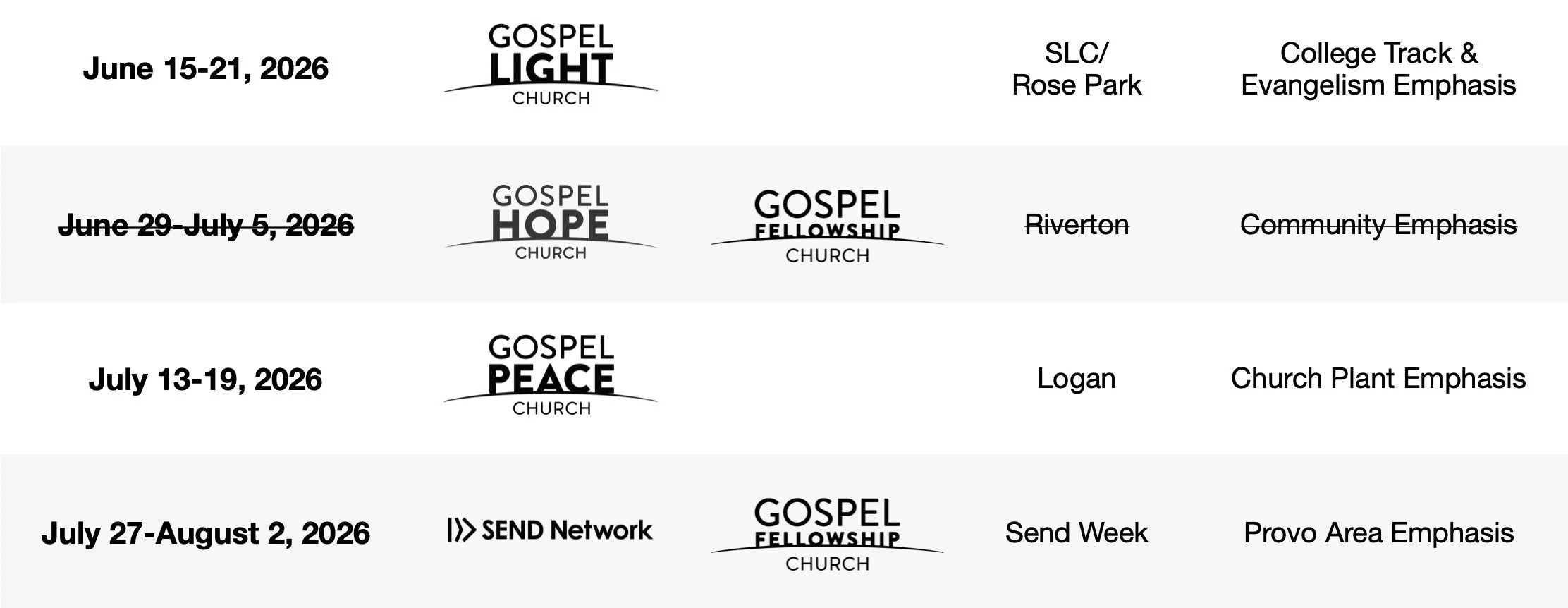 If June 29-July 5 (Gospel Hope week) is the only week you can attend and you'd like to be put on a waiting list, please email admin@plant4thegospel.com.